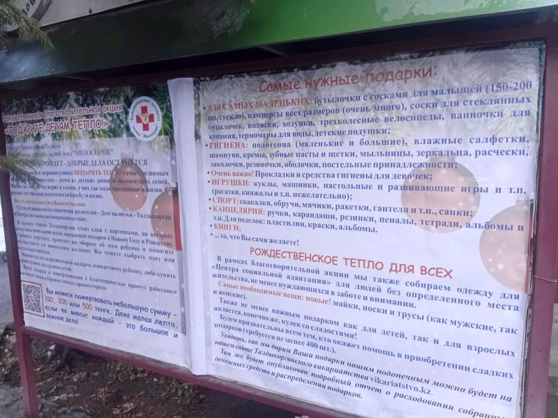 Это благое дело, проводимое православной службой «Милосердие», призвано помочь в сборе средств для приобретения новогодних и рождественских подарков в детские дома г. Талдыкоргана.