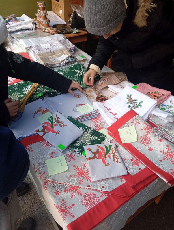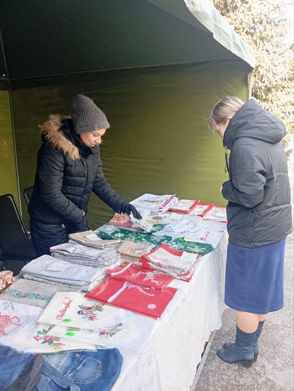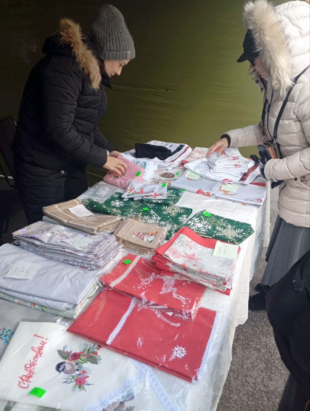 В ассортименте были представлены очень красивые и оригинальные поделки: изделия швейной мастерской «Покров» - расшитые салфетки, полотенца, сумочки, а также рождественские сувениры и украшения.
