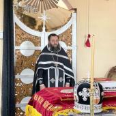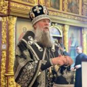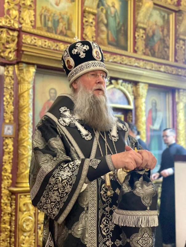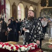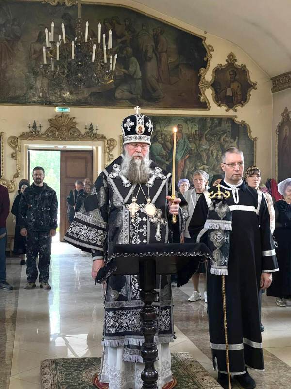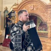 Его Преосвященству сослужили: протоиерей Павел Анищенко, ключарь храма иерей Александр Матлашов, иерей Игорь Лазгиев, иеромонах Максим (Романов), протодиакон Александр Мокий и диакон Рустик Якупов.