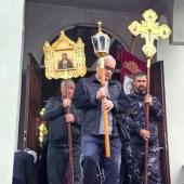 На утрени по прочтении статий (17-й кафизмы с умилительными стихами о распятии, смерти и погребении Господа) на великом славословии владыка и сослужащее духовенство с молящимися совершили крестный ход вокруг храма с Плащаницей. Это шествие напоминает верующим о Евангельских событиях погребения Тела Спасителя.