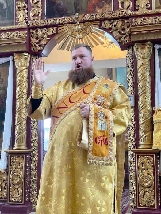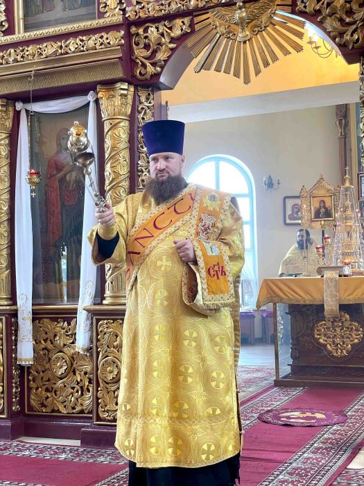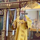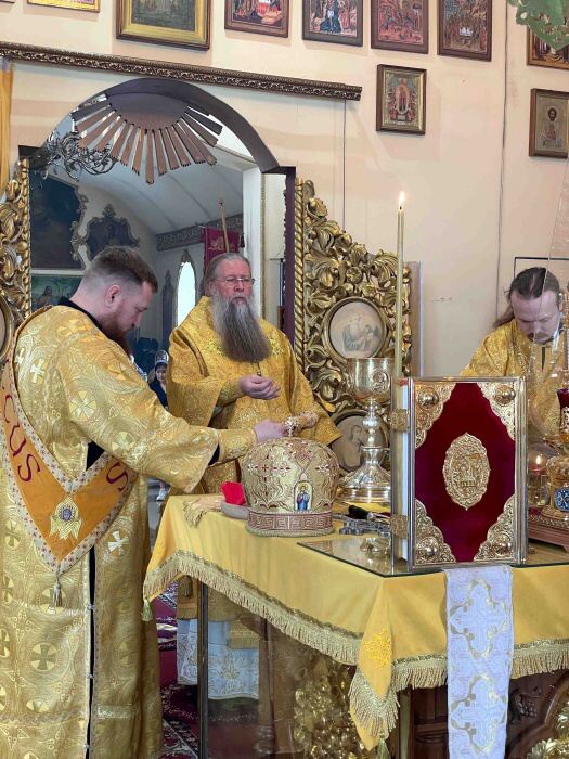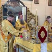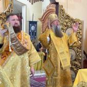 Его Преосвященству сослужили: ключарь храма иерей Александр Матлашов, клирики иерей Игорь Лазгиев, протодиакон Александр Мокий, диакон Рустик Якупов.