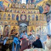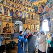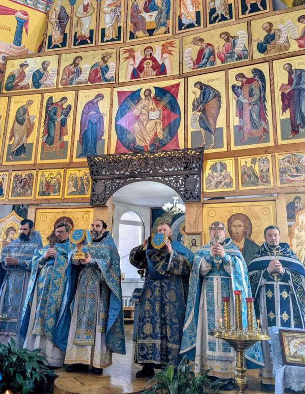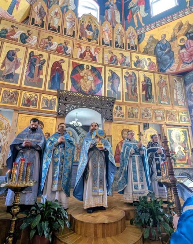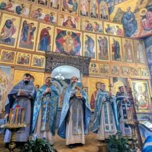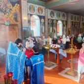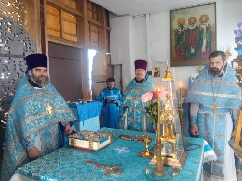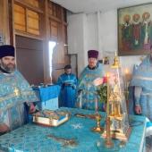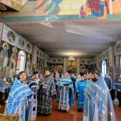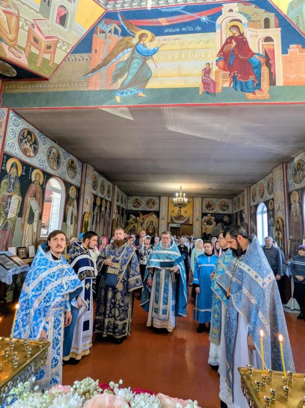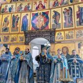 По окончании Литургии собор духовенства совершил краткий молебен, вознеся молитву и воспев величание перед храмовой иконой Пресвятой Богородицы.