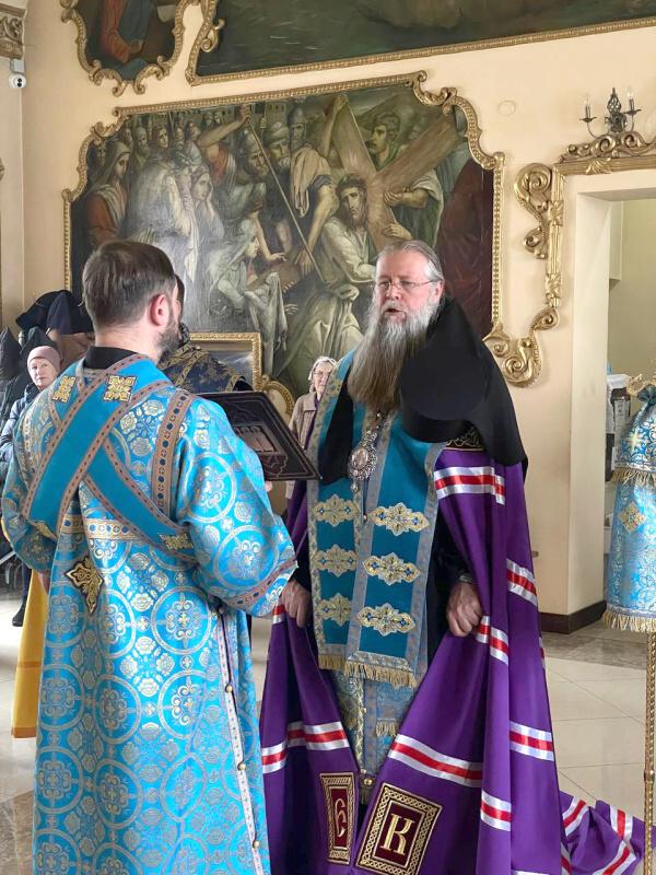 Его Преосвященству сослужили клирики храма протоиерей Павел Анищенко и протодиакон Александр Мокий.