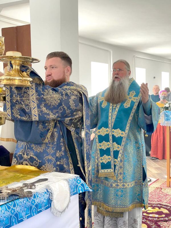 Владыке-епископу сослужили: настоятель храма протоиерей Юрий Дидичин, ключарь Иоанно-Богословского собора г. Талдыкорган иерей Александр Матлашов, настоятель храма Казанской иконы Божией Матери г. Сарканд иеромонах Владимир (Мищенко), протодиакон Александр Мокий.
