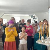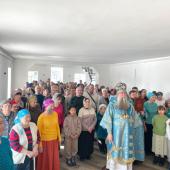 За богослужением молилось более ста человек, среди которых были как прихожане храма, так и множество гостей из близлежащих приходов и населенных пунктов. Почти все молящиеся причастились Святых и Животворящих Тела и Крови Христовых.